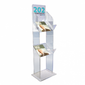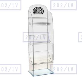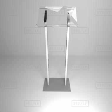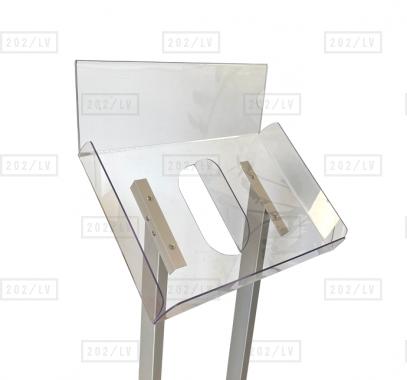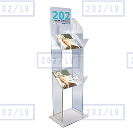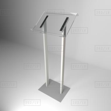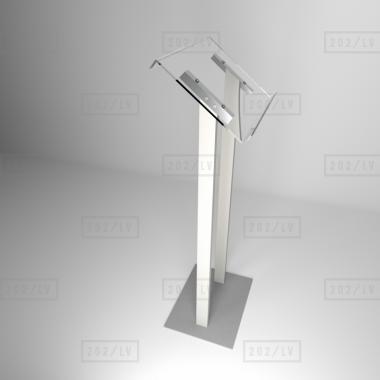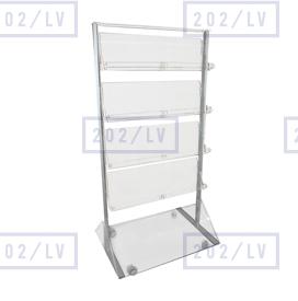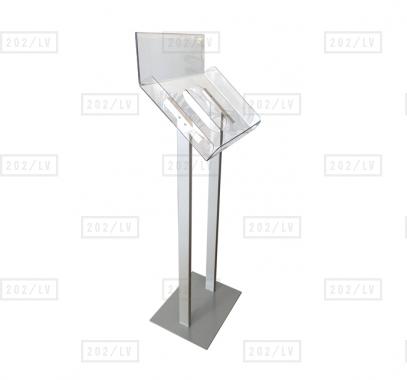 Stends uz dubultās kājas katalogu, bukletu un citu informatīvu materiālu izvietošanai. Stenda augšējā daļa ražota no organiskā stikla, stenda kājas - no alumīnija, stenda pamatne - no tērauda, tādējādi nodrošinot stenda stabilitāti. Stenda izmērs (organiskā stikla daļa) paredzēta divu blakus stāvošu A4 izmēra informatīvo materiālu izvietošanai. Iepriekš vienojoties, stendu ir iespējams papildināt ar metāla riņķiem lapu stiprināšanai.