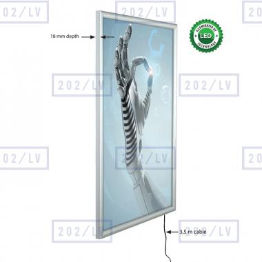 Best Buy LEDbox Single Sided panels. Best Buy LEDbox is high-end and attractive custom sign solutions for a wide range of indoor applications: retail point-of-purchase, tradeshow displays, movie theatres, sports facilities, shopping malls, casinos, and much more. These light boxes are only 18 mm in depth. They are one of the thinnest lightboxes in the market. They would make great choices for high-traffic areas, especially because they do not obstruct walking paths. Translucent poster material should be used for printing the signage of these edge lit displays. When illuminated, your advertisement will surely attract lots of attention, thanks to this LED edge lit lightbox. You do not need to worry if you want to use it for a long time, because LED bulbs last very long. You cannot see the LED bulbs from outside, since the LED bulbs of the indoor light box are embedded in the sides of the frame. High illumination is achieved by specially treated acrylic and provides homogenous illumination. The outer power supply help long product life. They consume less energy since their LED lighting is lower voltage compared to other signage display frames in the market. Through this LED lighting saves up to 60% energy costs. Besides they are less expensive as well. This results in cost saving both initially and after overall usage. Light box poster frames, are easy to load and re-load thanks to their snap open framing. You simply snap up all four sides of the frame and easily insert your poster or take out. Each frame includes an acrylic non-glare PET protective sheet to diffuse light across your graphics. It gives an impressive effect to grab the passers-by. They are designed for wall mounting and come with the necessary hardware for mounting. Also, each product has two wall hangers to move hangers in portrait and landscape position.