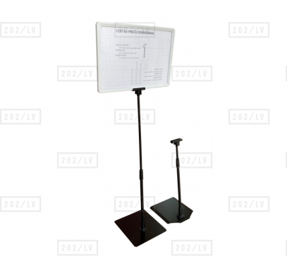 Lēts un ērts statīvs informācijas izvietošanai. Aizņem maz vietas, ir viegli izjaucams un uzglabājams. Risinājums piemērots vienkāršai un biežai informācijas maiņai. Par savādākiem satīvu un pēdu veidiem, kā arī krāsām un cenām jautāt atsevišķi vai skatīties sadaļā PLASTIKĀTA RĀMJI.