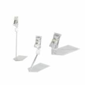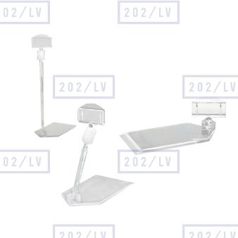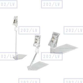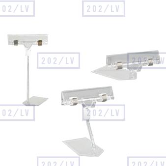 Pamatnes izmērs - 40 x 75 mm. Paredzēts, lai izvietotu dažādas zīmes, cenas vai bildes. Pieejami 3 veidi: Liels zīmju turētāju bez kāta, liels zīmju turētājs ar 5cm kātu ,liels zīmju turētājs ar 10cm kātu. Prece pārdodas izjauktā veidā.