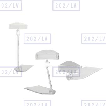 Pamatnes izmērs - 40 x 75 mm. Paredzēts, lai iespraustu dažādas zīmes, cenas vai bildes. Pieejami 3 veidi: Liels zīmju turētāju bez kāta, liels zīmju turētājs ar 5cm kātu ,liels zīmju turētājs ar 10cm kātu. Prece pārdodas izjauktā veidā!