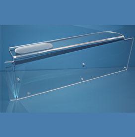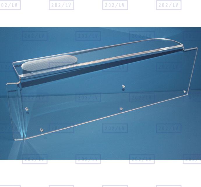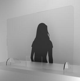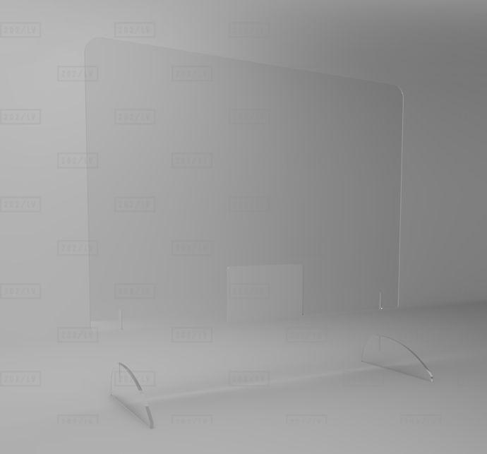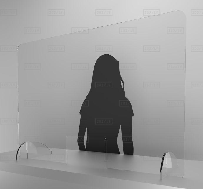 Organiskā stikla aizsargbarjera darbinieku un klientu drošībai. Iespējams izgatavot visdažādākajos izmēros un ar dažādiem stiprinājuma veidiem (uz galda brīvi stāvoša, pie galda stiprināma, karināma pie griestiem, u.c.)