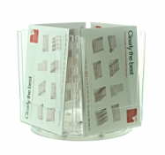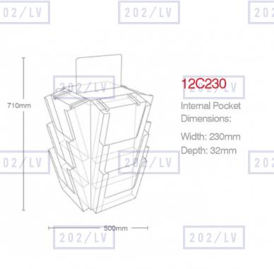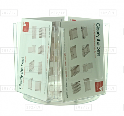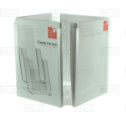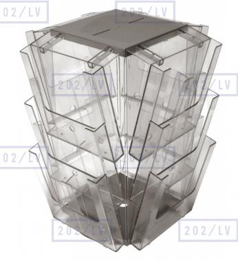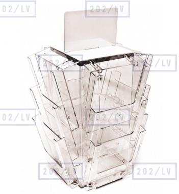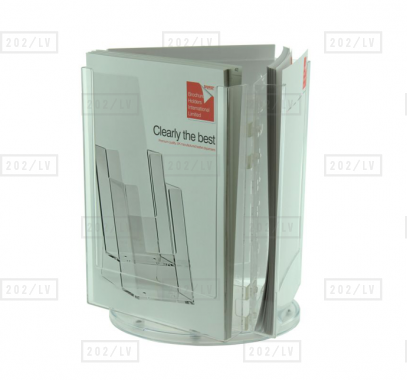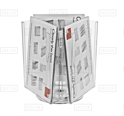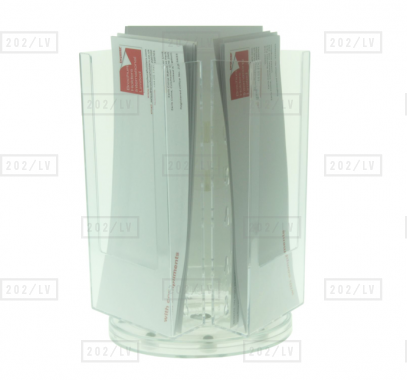A4 izmēra 12 kabatu rotējošs bukletu stends, kas paredzēts novietošanai uz galda. A4 kabatās iespējams ielikt sadalītājus, tādējādi kabatu sadalot divos 1/3A4 izmēra nodalījumos. Par preces pieejamību interesēties, rakstot e-pastā vai zvanot pa telefonu.