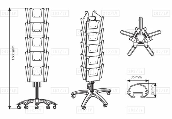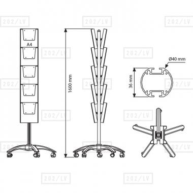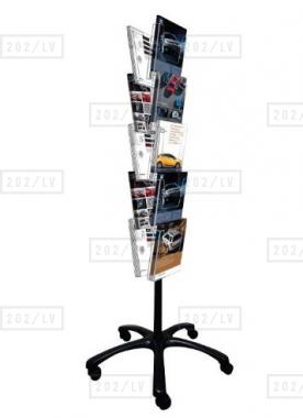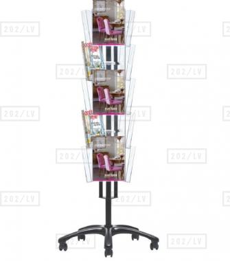 Rotējošs trīspusējs bukletu stends uz ritenīšiem