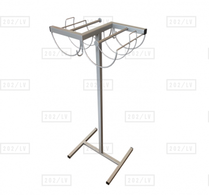 Uz grīdas novietojams metāla stends maisiņu izvietošanai. Stenda augstums 1000mm. Stends paredzēts divu polietilēna maisiņu ruļļu izvietošanai.