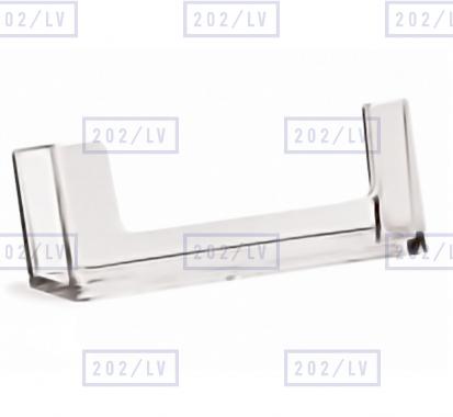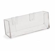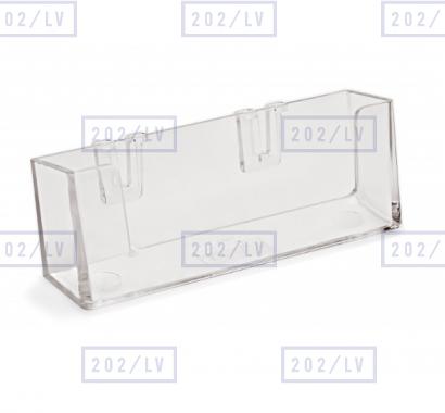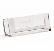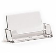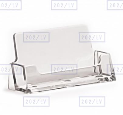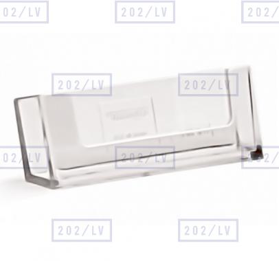 Caurspīdīgs uz galda novietojams vizītkaršu turētājs, izmērā 93 mm x 18 mm.
