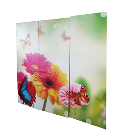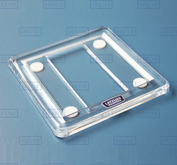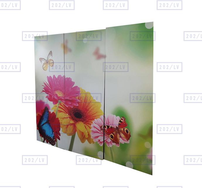 Any flat surface can be printed with UV Fltbed printer – acrylics, glass, wood, foam PVC, composite panels, etc. In addition to standard CMYK it has also LC, LM and white colours to provide the biggest range of colour shades.