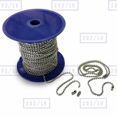 Ķēdīte, bumbiņas diametrs 2,4 mm. Pieejama divos fiksētos garumos vai ruļļos. Cenas norādītas bez PVN.