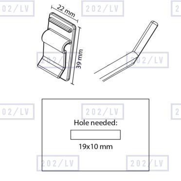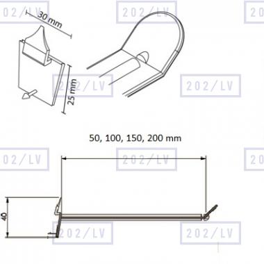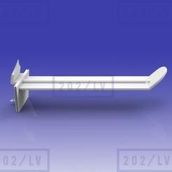 Dubults āķis preču izvietošanai rievsienām. Standarta krāsa: balta, citas krāsas - uz pieprasījumu. Pieejamie garumi: 100, 150, 200 mm, citi garumi - uz pieprasījumu.