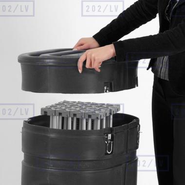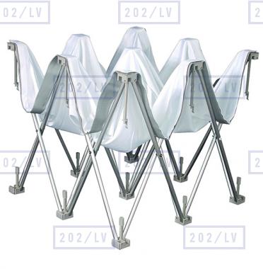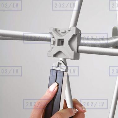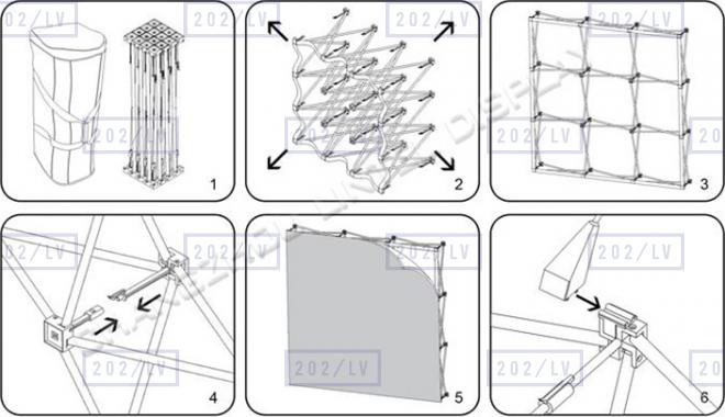 Stends ražots no alumīnija. Ērta salikšana tiek nodrošināta ar atsperēm vai magnētu sakabi.
