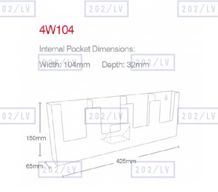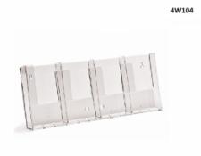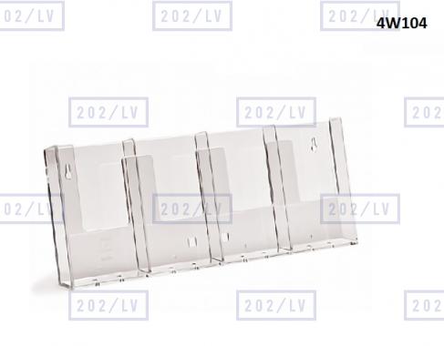 4 kabatu A4 horizontāl brošūru turētājs, ievietojot papildus nopērkamus sadalītājus, izmantojams arī kā 12 kabatu1/3 A4 brošūru turētājs vai 8 kabatu A5.