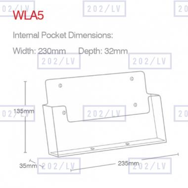 1 kabatas A5 vertikāls bukletu turētajs, noevietošanai pie sienas.