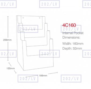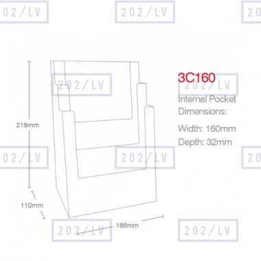 Divu blakus kabatau stends. Paredzēts A5 līfletiem un brošūrām. Kabatas izmērs 160x32mm.