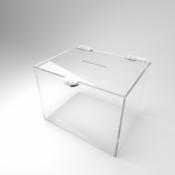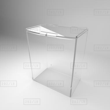 Organiskā stikla (akrila) kaste izmantojama aptaujām un ziedojumiem. Aizslēdzama ar piekaramo atslēgu. Atslēga nopērkama atsevišķi.